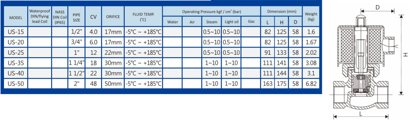 UNiD, Válvula Solenoide N/C para Vapor, Modelo US
